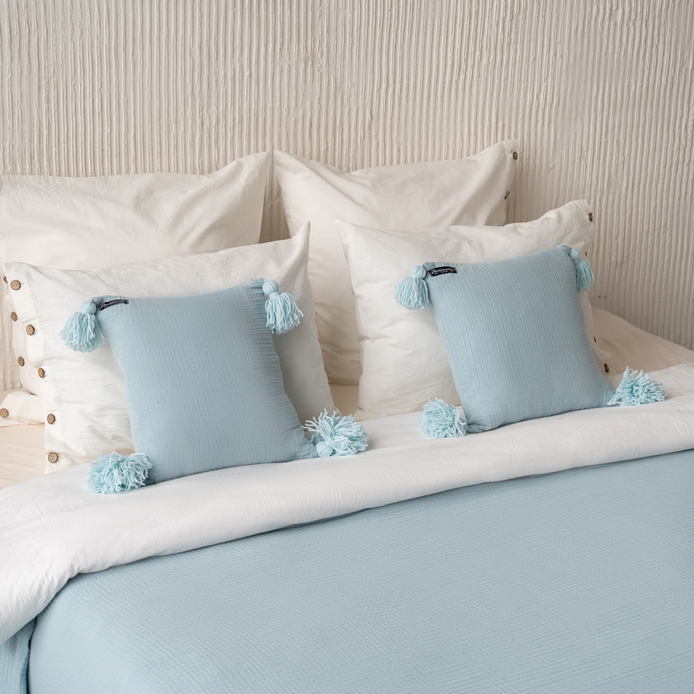 Декоративная наволочка из четырехслойного муслина с декоративными кисточками. Состав: 100% хлопок. Производство: Россия