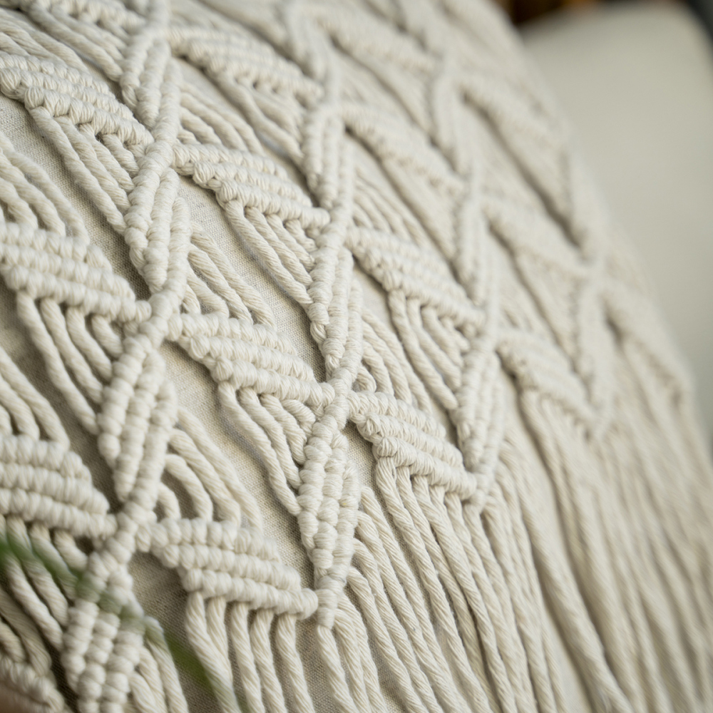 Декоративная наволочка из натуральной ткани, дополненная ручной работой по макраме. Сделано в России.