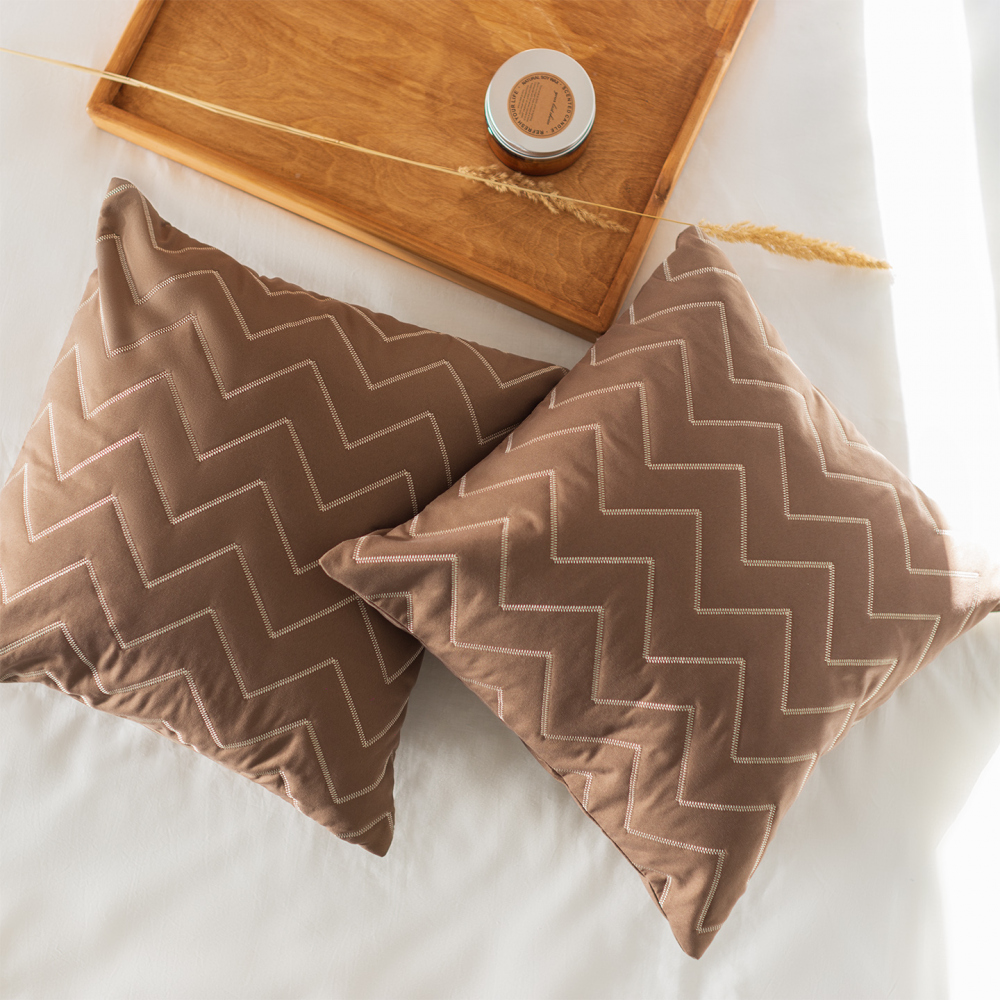 Декоративная наволочка на молнии из коллекции "Сканди" из мягкой ткани со стёжкой зиг-заг.