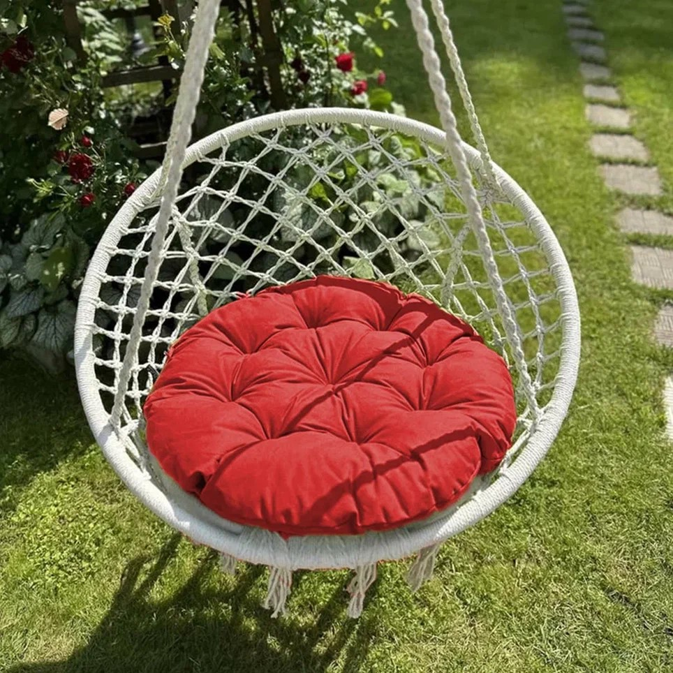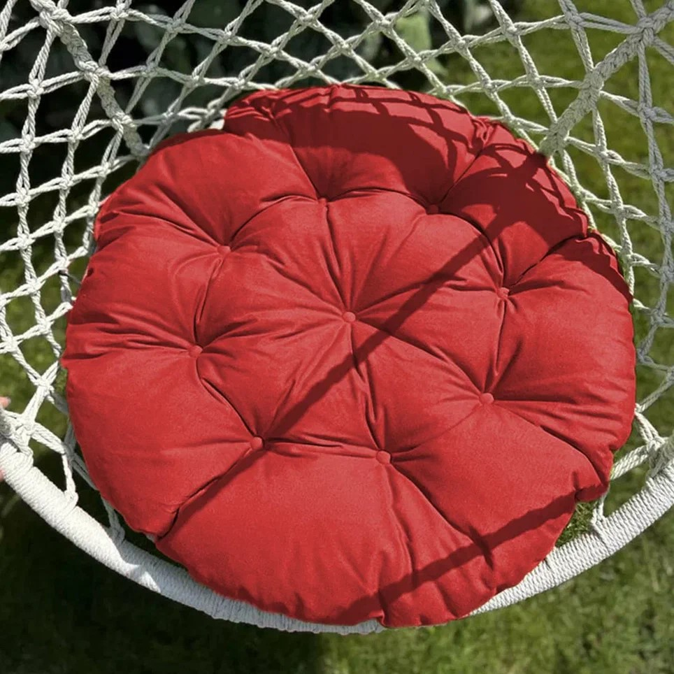 Большая круглая подушка для качелей с завязками, диаметром 115 см. Подойдет как для подвесных, так и для напольных изделий. Подушка на 65% выполнена из хлопка. Мягкая сидушка не боится прямых солнечных лучей и не выцветает со временем. Все товары PASIONARIA произведены в России и имеют сертификаты качества.