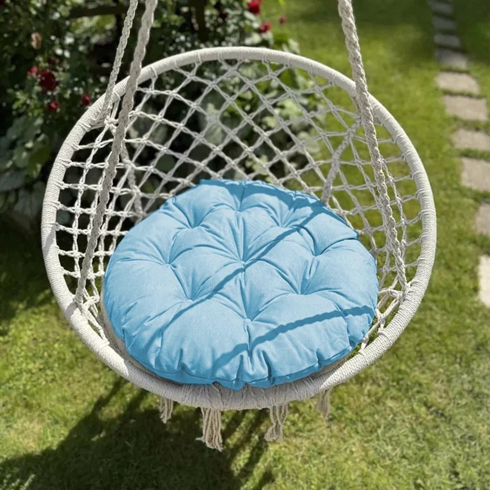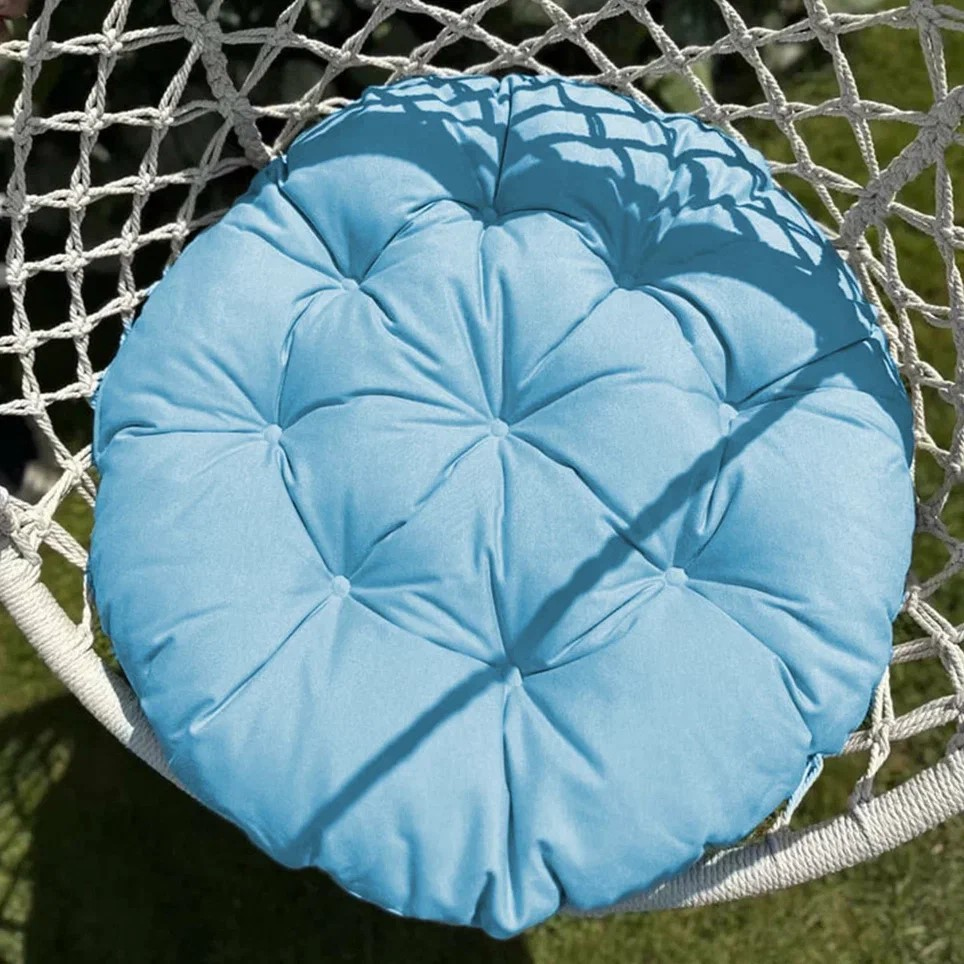Большая круглая подушка для качелей с завязками, диаметром 115 см. Подойдет как для подвесных, так и для напольных изделий. Подушка на 65% выполнена из хлопка. Мягкая сидушка не боится прямых солнечных лучей и не выцветает со временем. Все товары PASIONARIA произведены в России и имеют сертификаты качества.