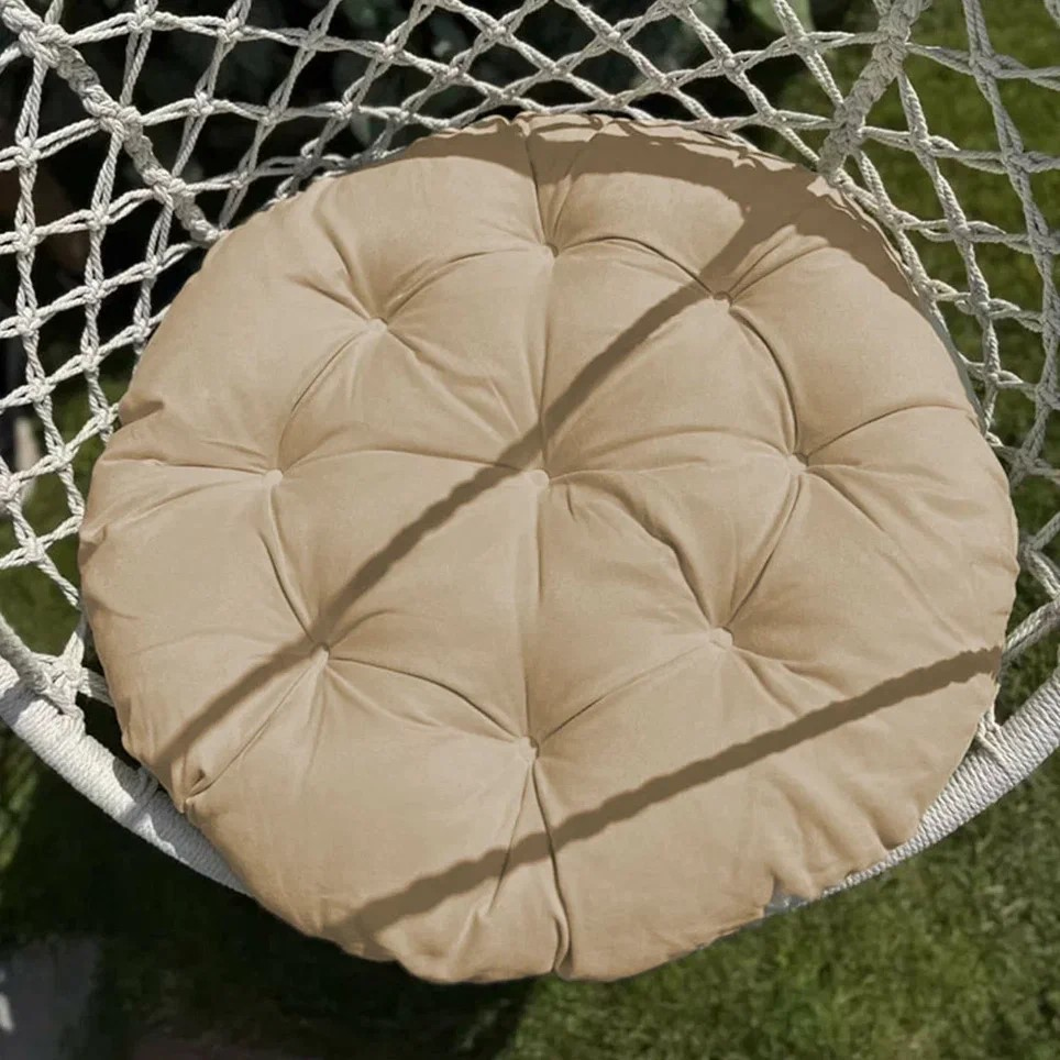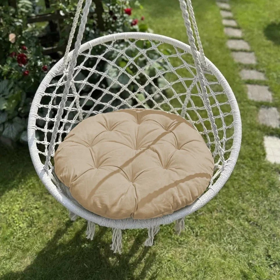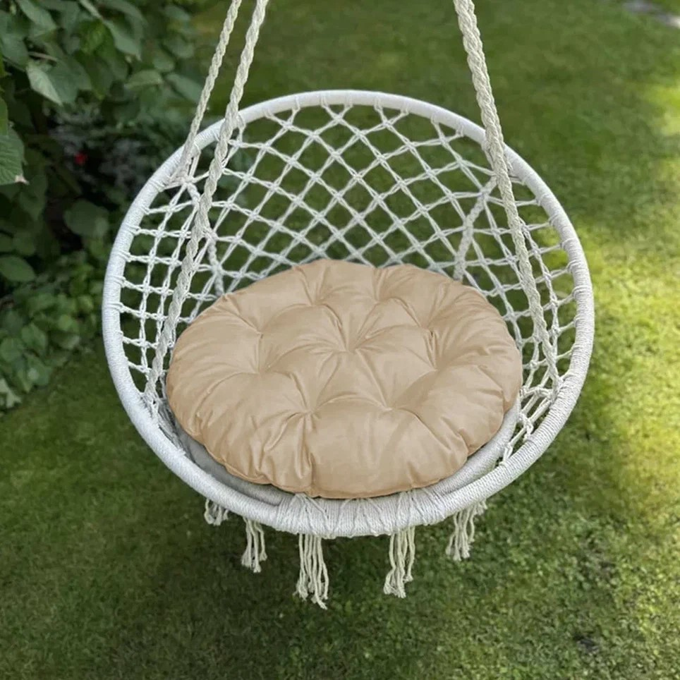 Большая круглая подушка для качелей с завязками, диаметром 115 см. Подойдет как для подвесных, так и для напольных изделий в закрытом теплом помещении, так как подушка не должна быть подвержена прямому попаданию влаги. Все товары PASIONARIA произведены в России и имеют сертификаты качества.