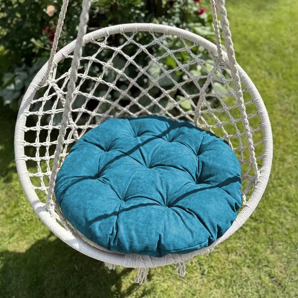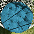 Большая круглая подушка для качелей с завязками, диаметром 115 см. Подойдет как для подвесных, так и для напольных изделий в закрытом теплом помещении, так как подушка не должна быть подвержена прямому попаданию влаги. Все товары PASIONARIA произведены в России и имеют сертификаты качества.