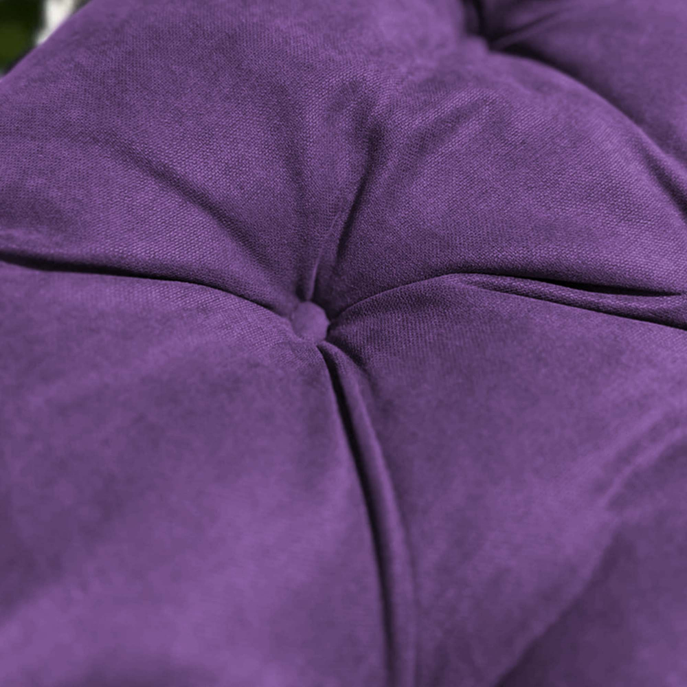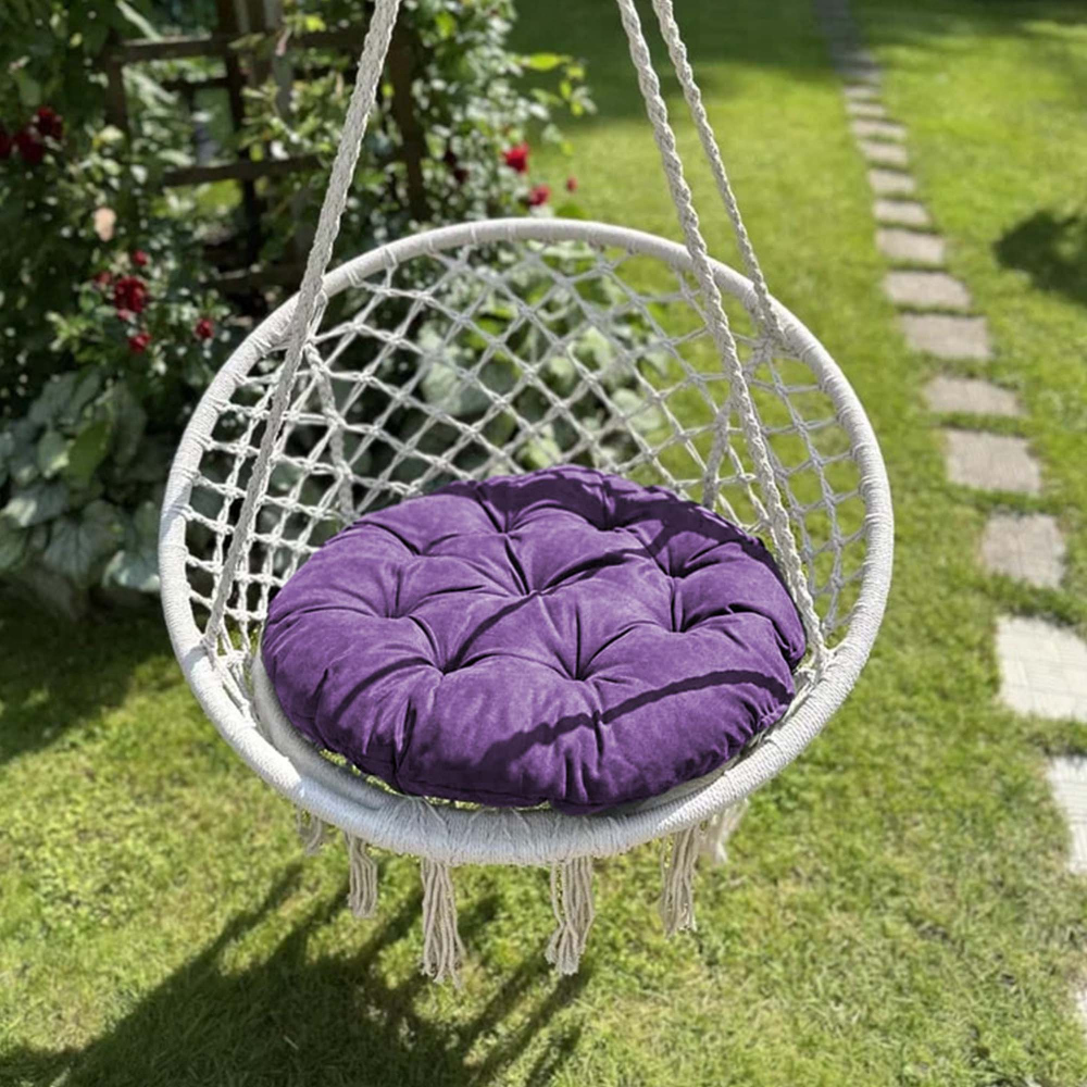Большая круглая подушка для качелей с завязками, диаметром 115 см. Подойдет как для подвесных, так и для напольных изделий в закрытом теплом помещении, так как подушка не должна быть подвержена прямому попаданию влаги. Все товары PASIONARIA произведены в России и имеют сертификаты качества.