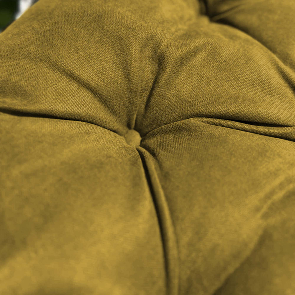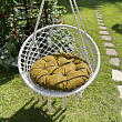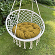 Большая круглая подушка для качелей с завязками, диаметром 115 см. Подойдет как для подвесных, так и для напольных изделий в закрытом теплом помещении, так как подушка не должна быть подвержена прямому попаданию влаги. Все товары PASIONARIA произведены в России и имеют сертификаты качества.