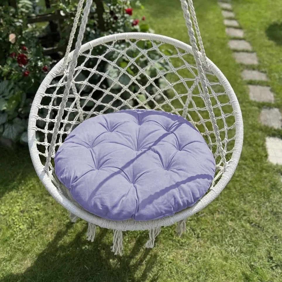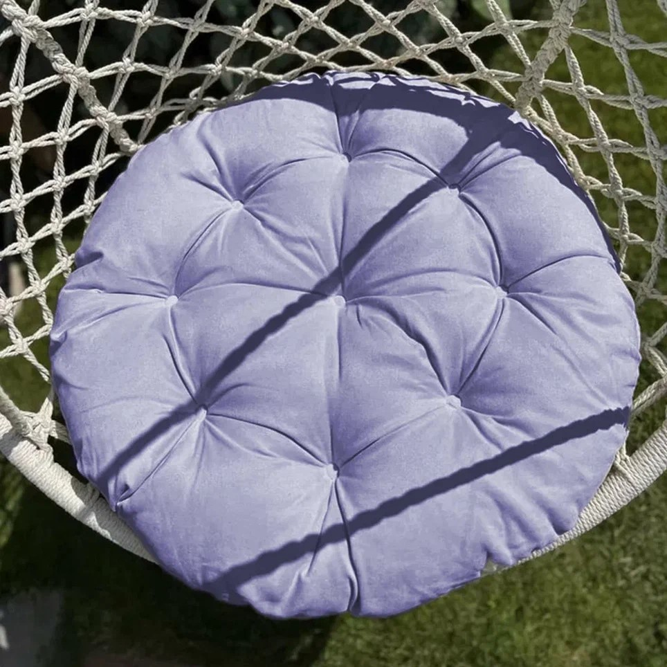 Большая круглая подушка для качелей с завязками, диаметром 115 см. Подойдет как для подвесных, так и для напольных изделий в закрытом теплом помещении, так как подушка не должна быть подвержена прямому попаданию влаги. Все товары PASIONARIA произведены в России и имеют сертификаты качества.