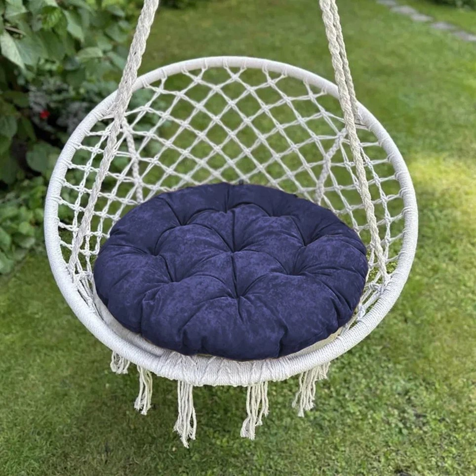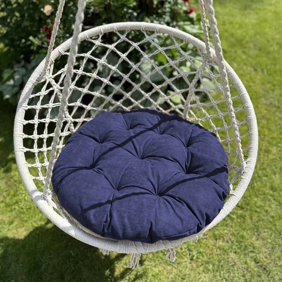 Большая круглая подушка для качелей с завязками, диаметром 115 см. Подойдет как для подвесных, так и для напольных изделий в закрытом теплом помещении, так как подушка не должна быть подвержена прямому попаданию влаги. Все товары PASIONARIA произведены в России и имеют сертификаты качества.