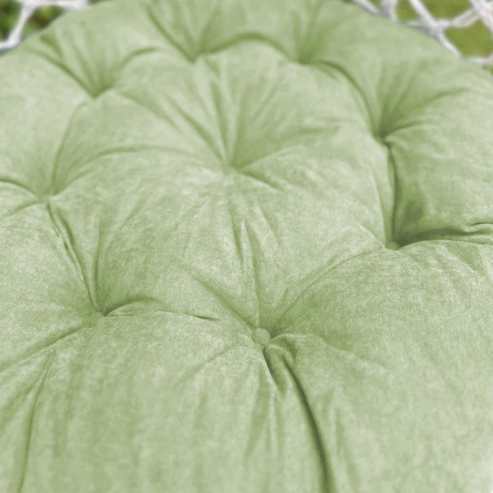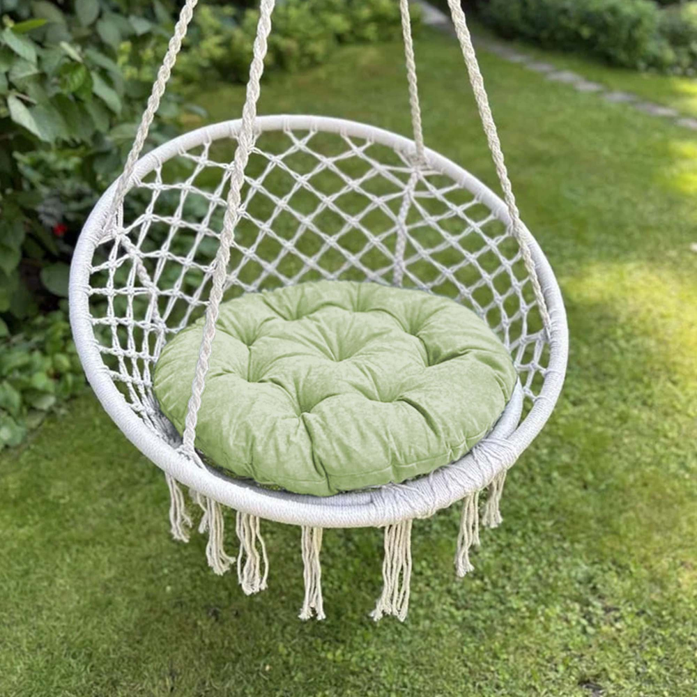 Большая круглая подушка для качелей с завязками, диаметром 115 см. Подойдет как для подвесных, так и для напольных изделий в закрытом теплом помещении, так как подушка не должна быть подвержена прямому попаданию влаги. Все товары PASIONARIA произведены в России и имеют сертификаты качества.