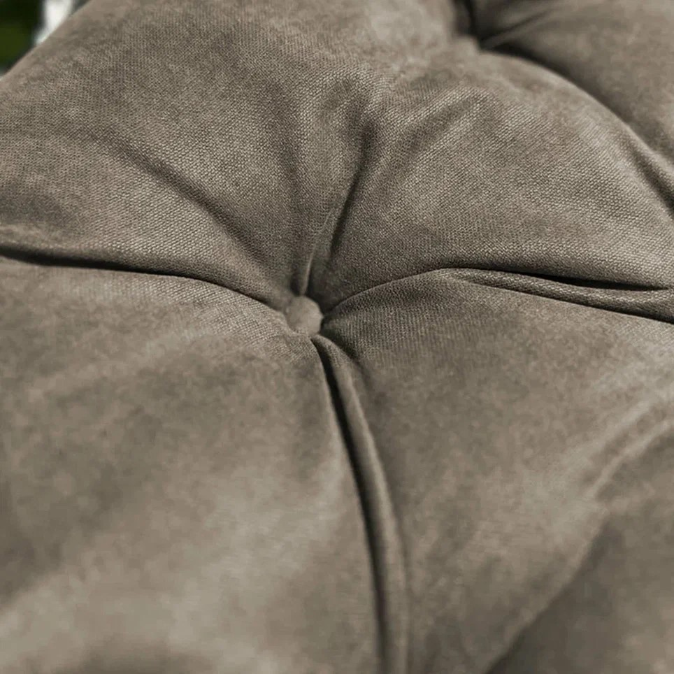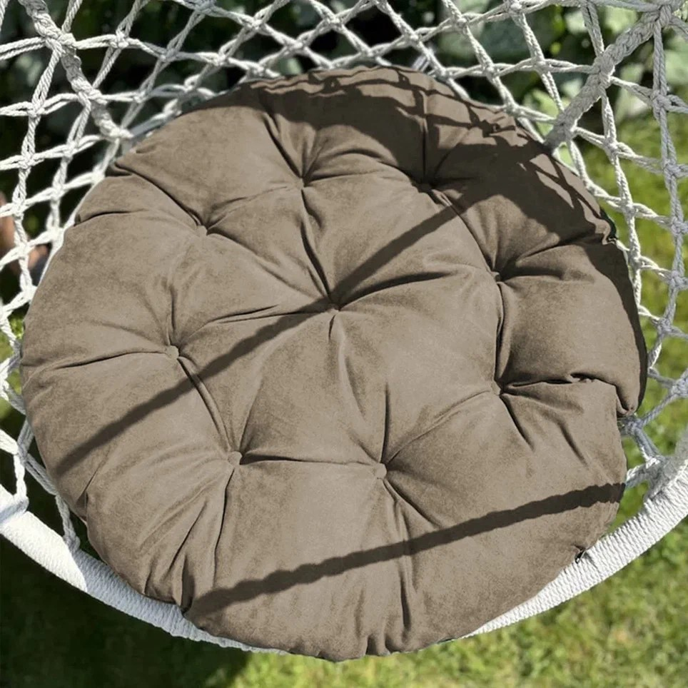 Большая круглая подушка для качелей с завязками, диаметром 115 см. Подойдет как для подвесных, так и для напольных изделий в закрытом теплом помещении, так как подушка не должна быть подвержена прямому попаданию влаги. Все товары PASIONARIA произведены в России и имеют сертификаты качества.