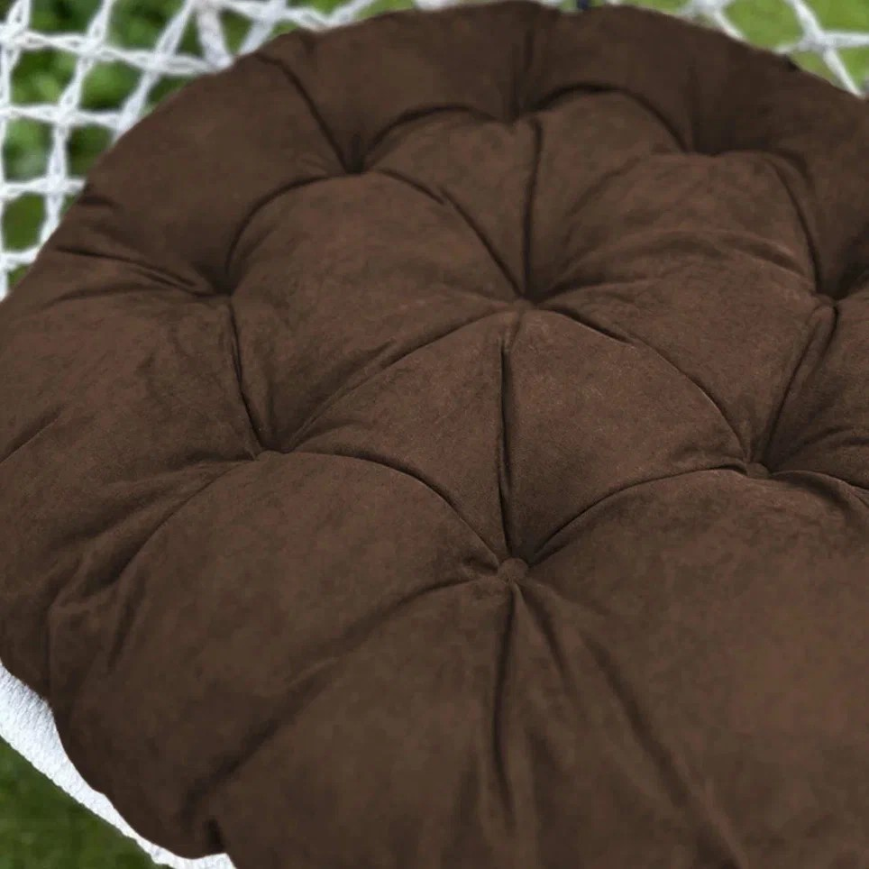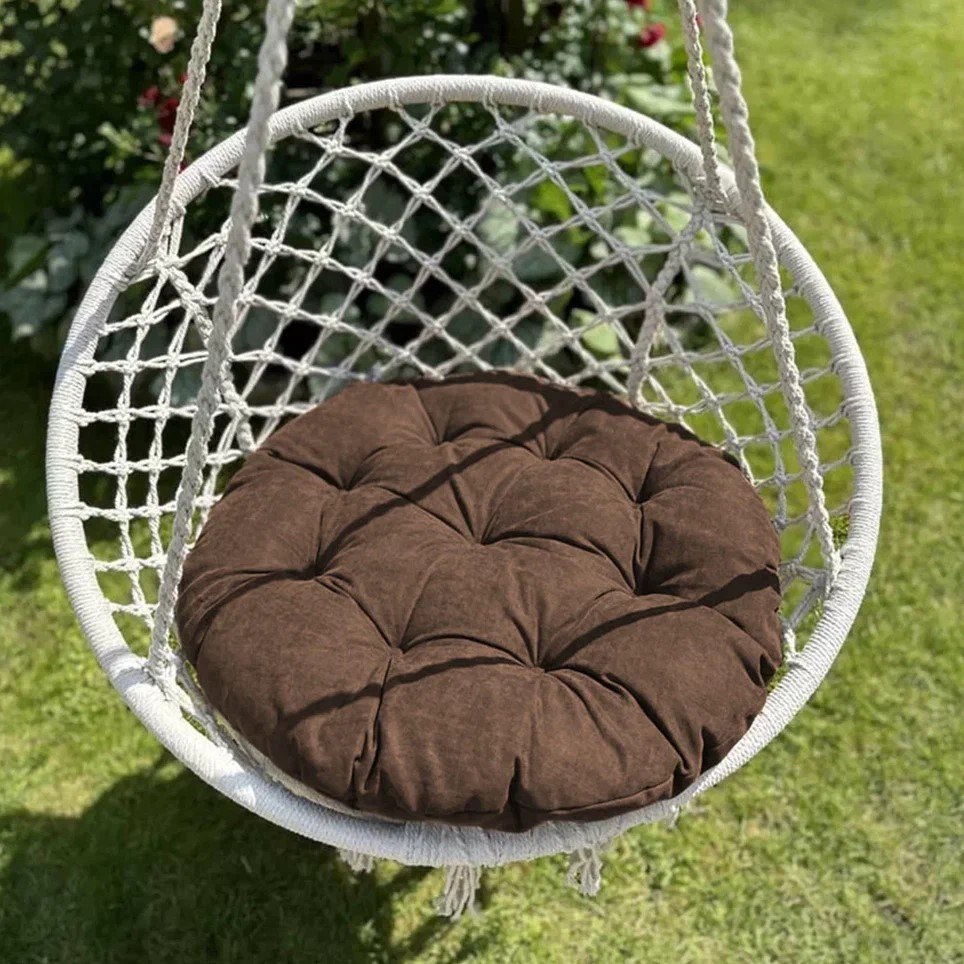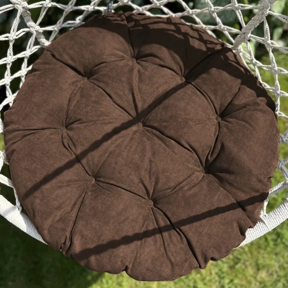 Большая круглая подушка для качелей с завязками, диаметром 115 см. Подойдет как для подвесных, так и для напольных изделий в закрытом теплом помещении, так как подушка не должна быть подвержена прямому попаданию влаги. Все товары PASIONARIA произведены в России и имеют сертификаты качества.