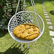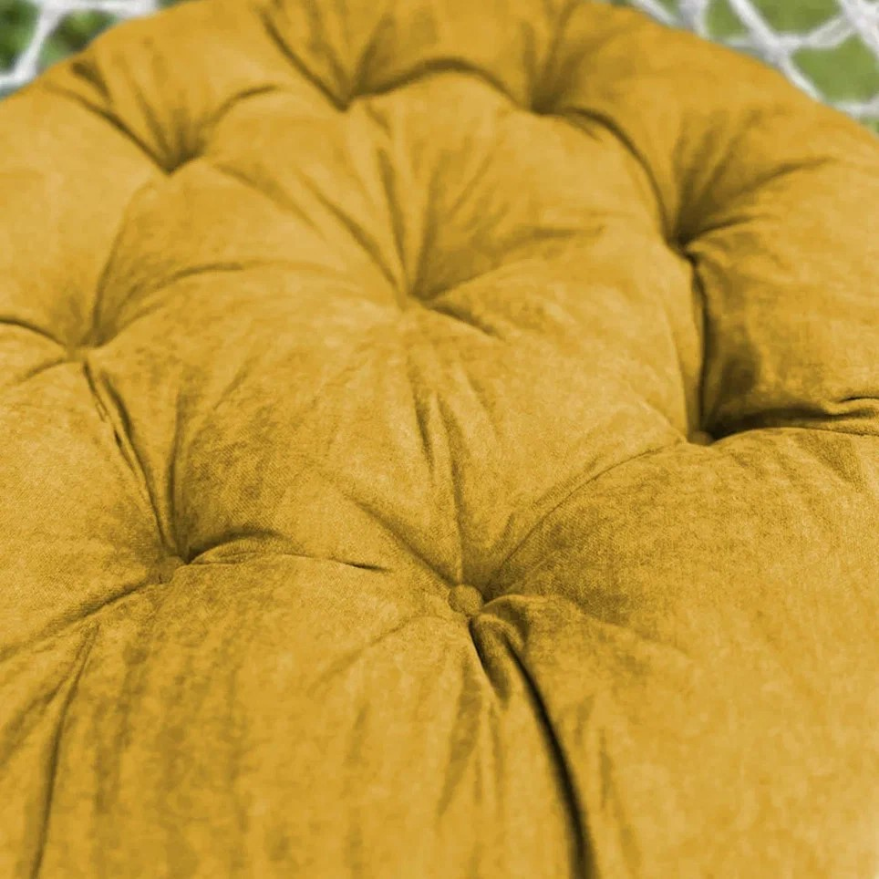 Большая круглая подушка для качелей с завязками, диаметром 115 см. Подойдет как для подвесных, так и для напольных изделий в закрытом теплом помещении, так как подушка не должна быть подвержена прямому попаданию влаги. Все товары PASIONARIA произведены в России и имеют сертификаты качества.