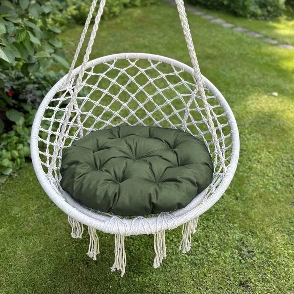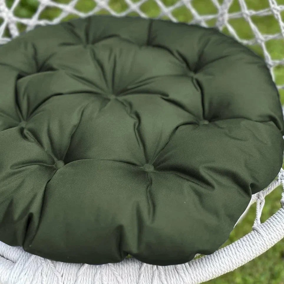 Большая круглая подушка для качелей с завязками, диаметром 115 см. Однотонная непромокаемая подушка для садовых качель выполнена из плотной износостойкой ткани оксфорд. Мягкая грязе- и водоотталкивающая (водонепроницаемая) сидушка не боится прямых солнечных лучей и не выцветает со временем Все товары PASIONARIA произведены в России и имеют сертификаты качества.