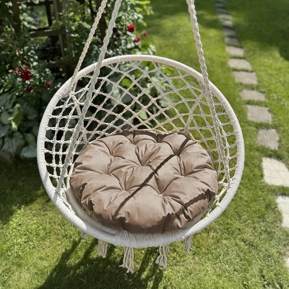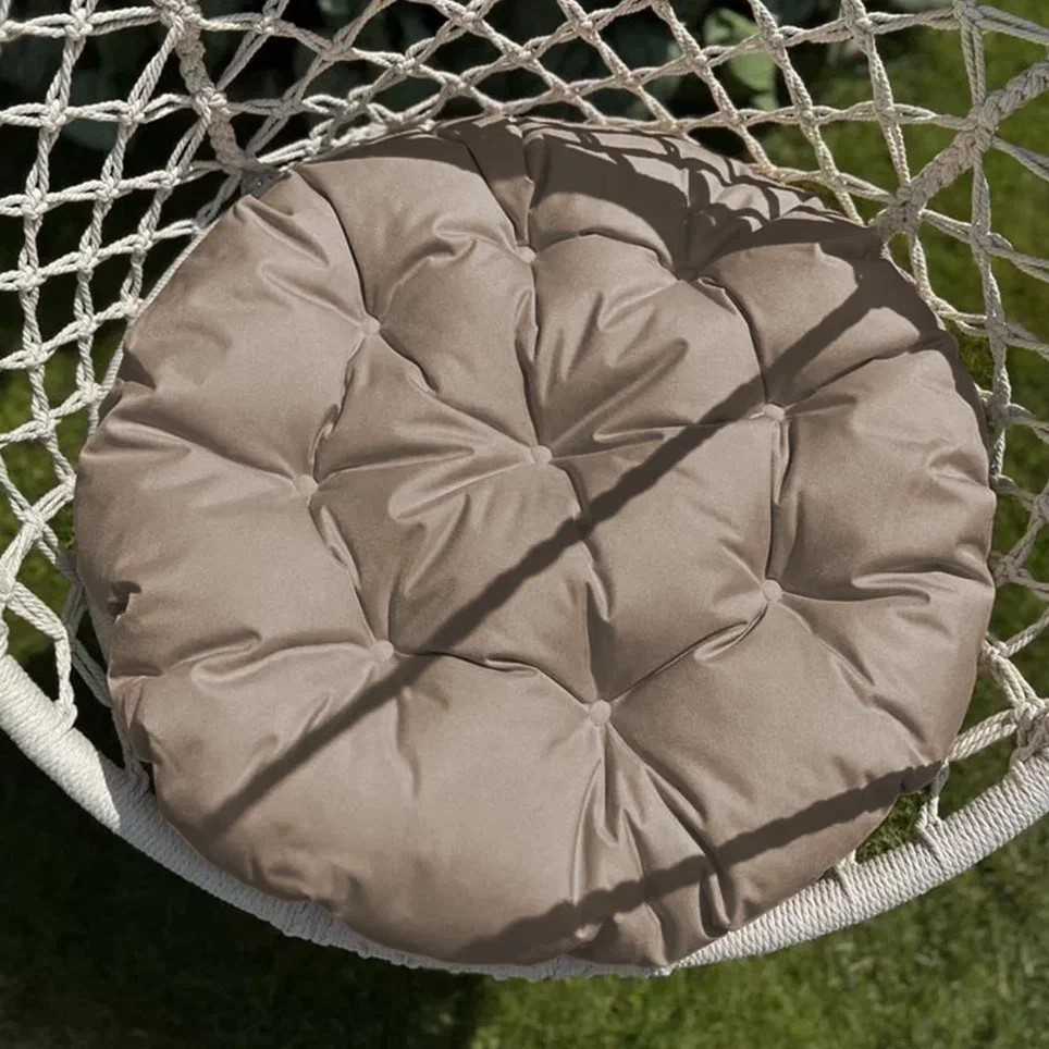 Большая круглая подушка для качелей с завязками, диаметром 115 см. Однотонная непромокаемая подушка для садовых качель выполнена из плотной износостойкой ткани оксфорд. Мягкая грязе- и водоотталкивающая (водонепроницаемая) сидушка не боится прямых солнечных лучей и не выцветает со временем Все товары PASIONARIA произведены в России и имеют сертификаты качества.