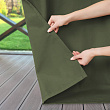 Размер уличной занавески 143 см х 200 см. В комплекте 1 штора с подхватом на липучке - размер 6х50 см. По верхнему краю пришиты  8 штук петель на липучках, благодаря такому методу крепления шторы вывешиваются максимально просто и без демонтажа карниза. Штора на петлях для улицы более универсальна, чем шторы на люверсах, от которых может появляться ржавчина.