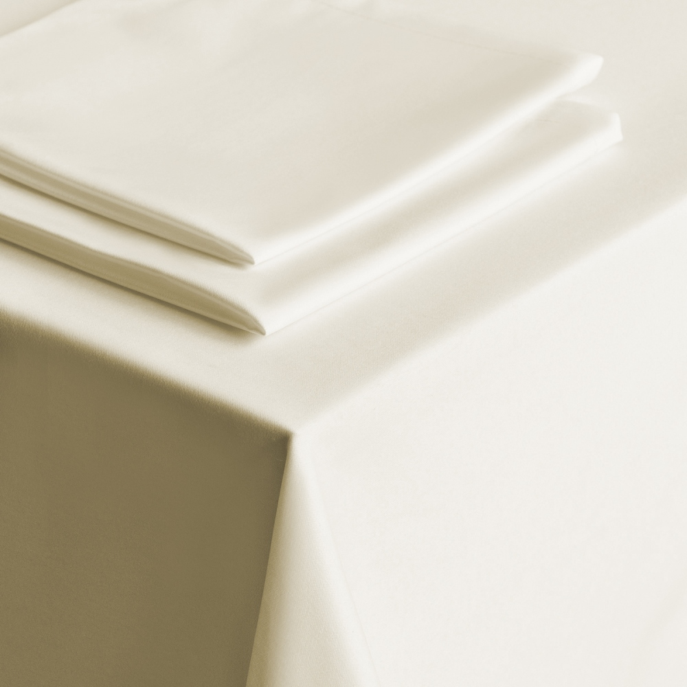 Комплект текстильных скатертей с влаго- и грязеотталкивающими свойствами. Состав ткани - 47% Хлопок/53% Полиэстер. Обработка края - "евроуголок" (прямоугольная) и "косая бейка" (круглые). Плотность ткани - 238 г/м2.