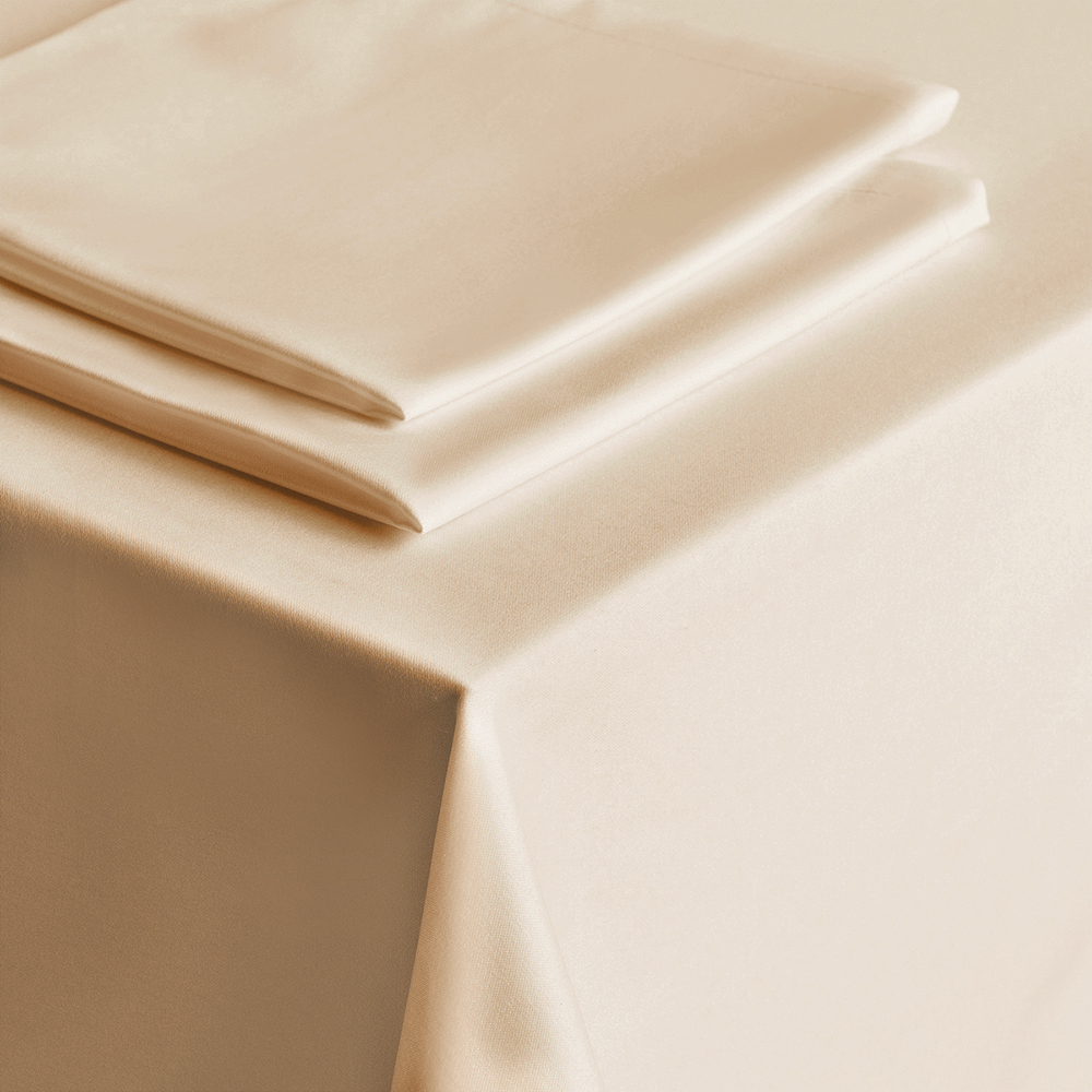 Комплект текстильных скатертей с влаго- и грязеотталкивающими свойствами. Состав ткани - 47% Хлопок/53% Полиэстер. Обработка края - "евроуголок" (прямоугольная) и "косая бейка" (круглые). Плотность ткани - 238 г/м2.