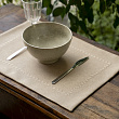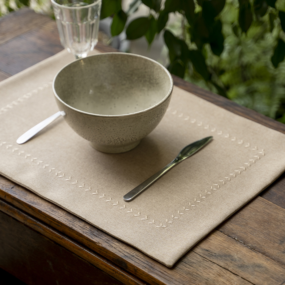 Текстильный сет/плэйсмат из фактурной декоративной ткани "под рогожку" с декоративной вышивкой. Состав ткани - 100% Полиэстер. Обработка края - "евроуголок". Плотность ткани 325 г/м2.