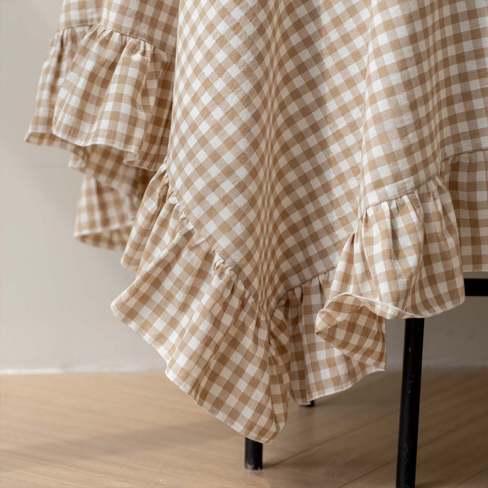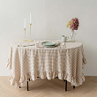 Скатерть из декоративной ткани, украшенная рюшами в стиле кантри, добавит атмосферу тепла и женственности вашей кухне или столовой. Состав ткани - 100% Хлопок. Плотность ткани - 120 г/м2.