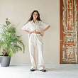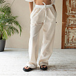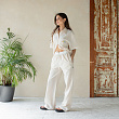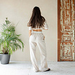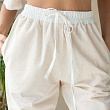 Брюки из из вареного хлопка на резинке, с контрастным поясом. Состав - 100% Хлопок. Параметры модели - 172, 87/62/92. На модели - размер S/M. Сделано в России.
