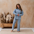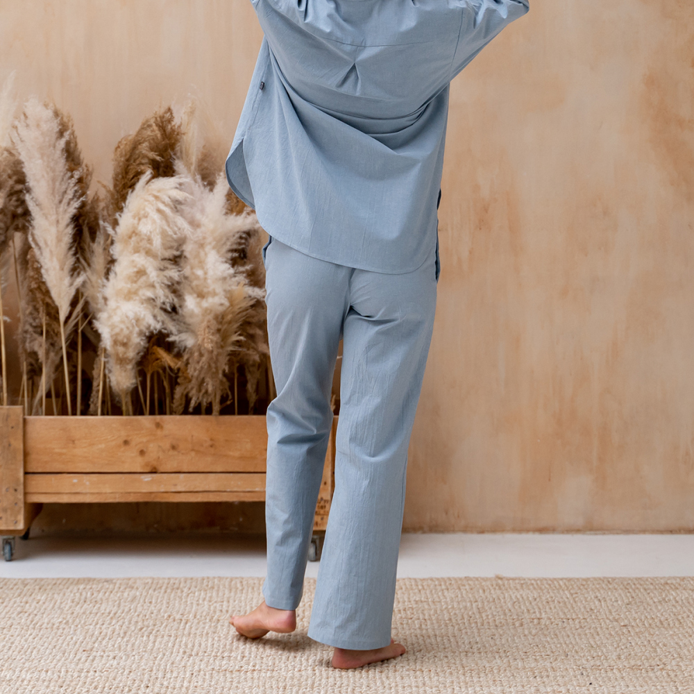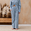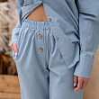 Брюки из вареного хлопка прямого кроя на резинке, декорированные контрастными пуговицами. Состав - 100% Хлопок. Параметры модели - 172, 87/62/92. На модели - размер S/M. Сделано в России.