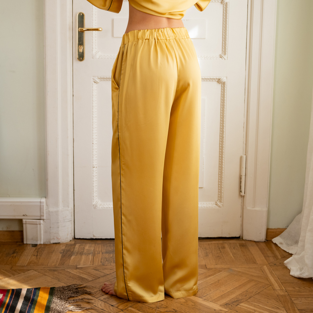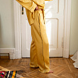 Брюки прямого кроя на резинке из тенселя. Состав 60% тенсель/ 40% хлопок. На модели - размер S/M. Сделано в России.