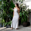 Платье-комбинация из тенселя длиной "макси". Состав - 60% тенсель / 40% хлопок. Параметры модели - 165, 82/60/89. На модели - размер S. Сделано в России.