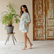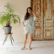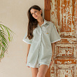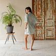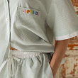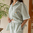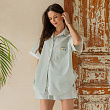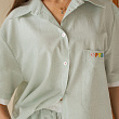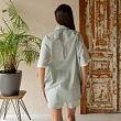 Рубашка из вареного хлопка с коротким рукавом, декорированная контрастной вышивкой на грудном кармане. Состав - 100% Хлопок. Параметры модели - 172, 87/62/92. На модели - размер S/M. Сделано в России.