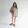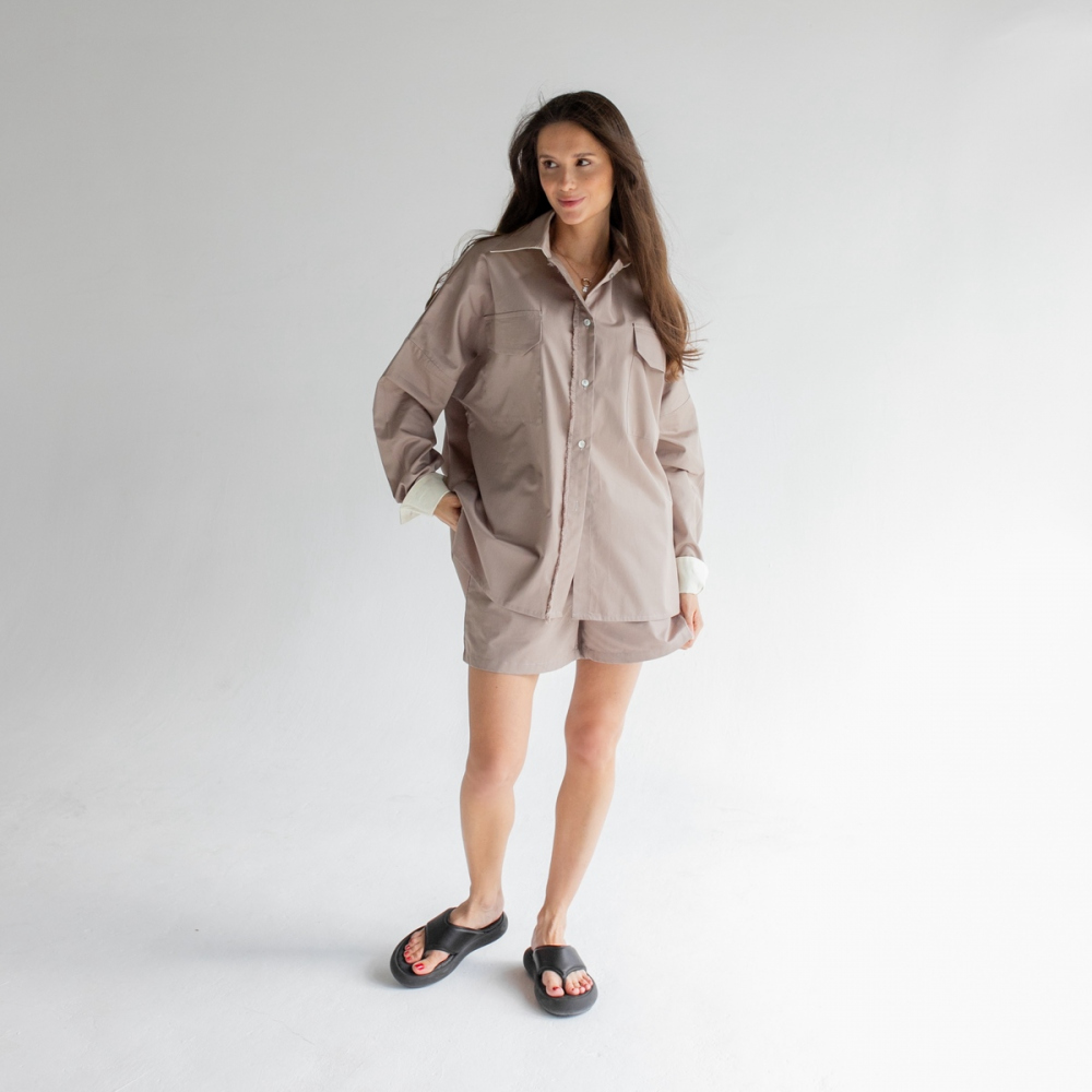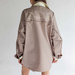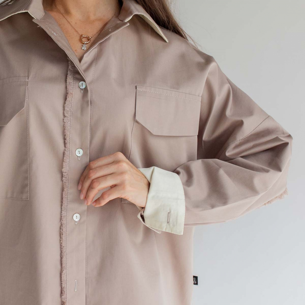 Рубашка из сатина, декорированная вышивкой и бахромой. Манжеты и ворот выполнены из контрастной ткани. Состав - 100% Хлопок. Параметры модели - 172, 87/62/92. На модели - размер S/M. Сделано в России.