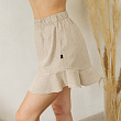 Шорты из вареного хлопка на резинке, с рюшами. Состав - 100% Хлопок. Параметры модели - 172, 87/62/92. На модели - размер S/M. Сделано в России.