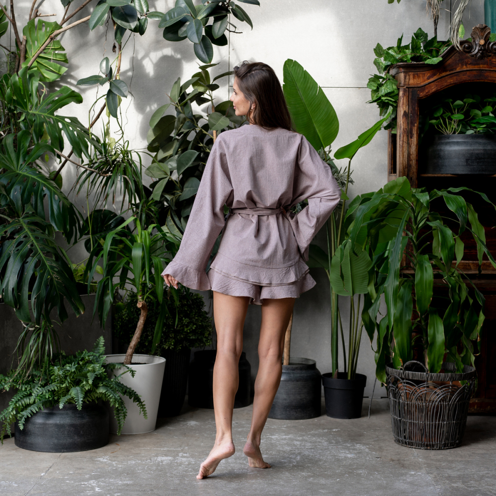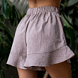 Шорты из вареного хлопка на резинке, с рюшами. Состав - 100% Хлопок. Параметры модели - 172, 87/62/92. На модели - размер S/M. Сделано в России.