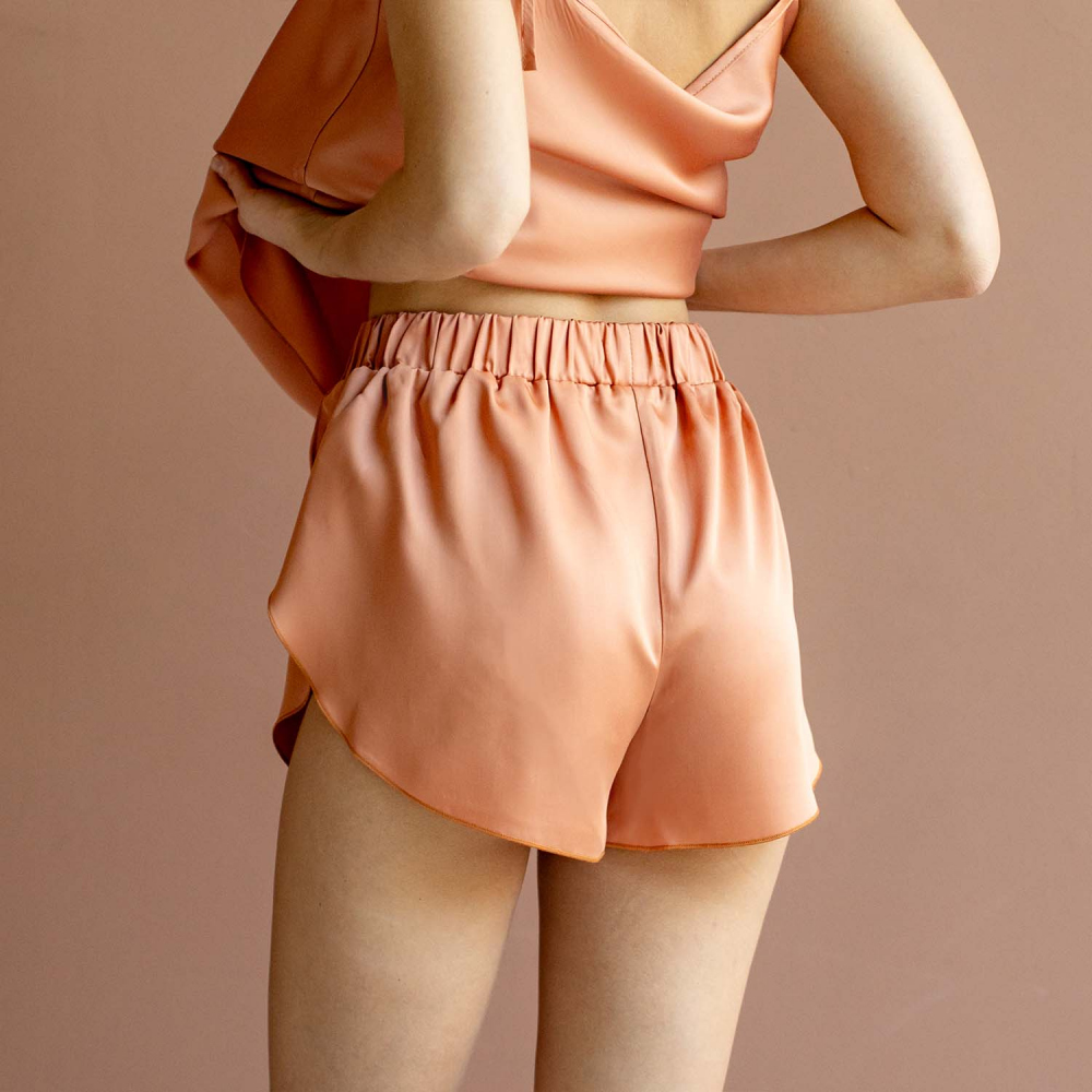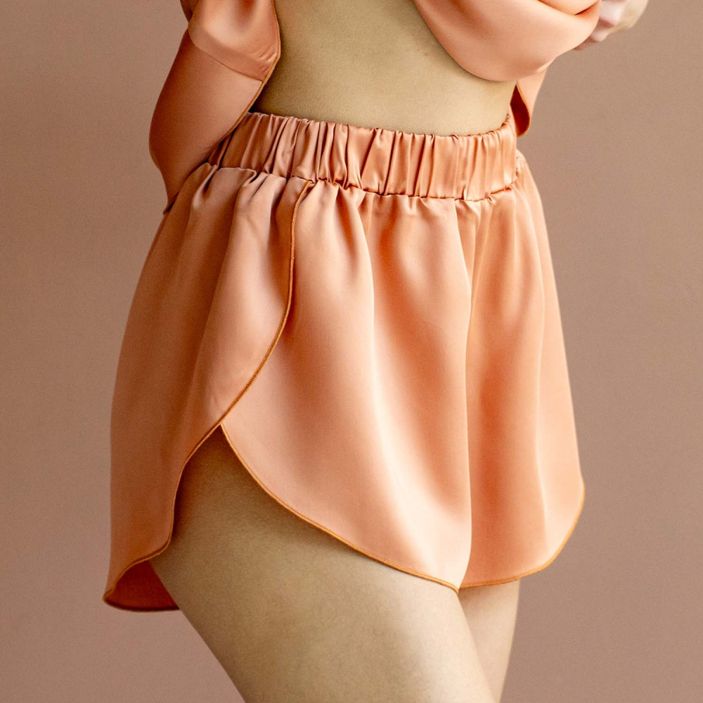 Шорты на резинке из тенселя. Состав 60% тенсель/ 40% хлопок. На модели - размер S/M. Сделано в России.