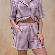 Шорты из вафельного полотна на резинке с карманами, декорированные контрастными пуговицами. Состав - 100% хлопок. Параметры модели - 172, 87/62/92. На модели - размер S/M. Сделано в России.