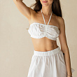 Укороченный топ из вареного хлопка на резинках. Состав - 100% Хлопок. Параметры модели - 172, 87/62/92. На модели - размер S/M. Сделано в России.