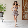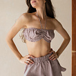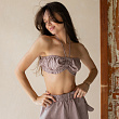 Укороченный топ из вареного хлопка на резинках. Состав - 100% Хлопок. Параметры модели - 172, 87/62/92. На модели - размер S/M. Сделано в России.