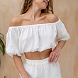 Укороченный топ из муслина на резинках. Состав - 100% Хлопок. Параметры модели - 172, 87/62/92. На модели - размер S/M. Сделано в России.