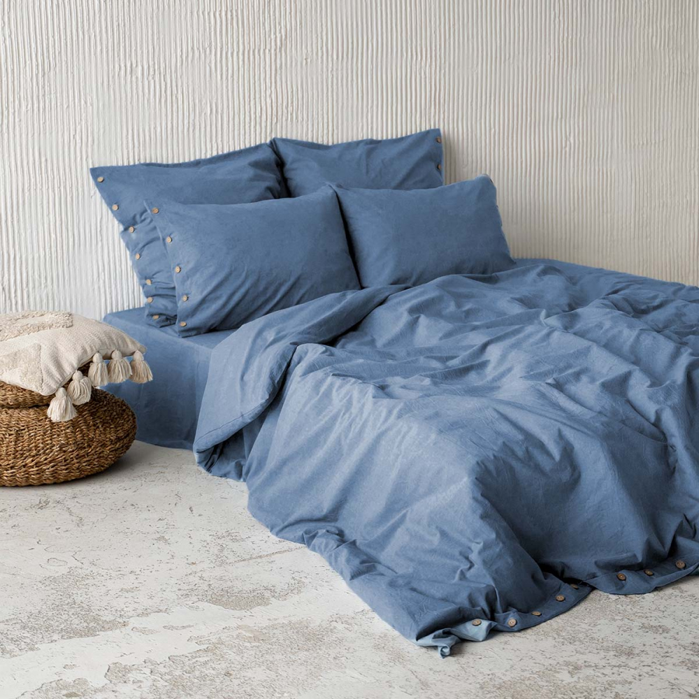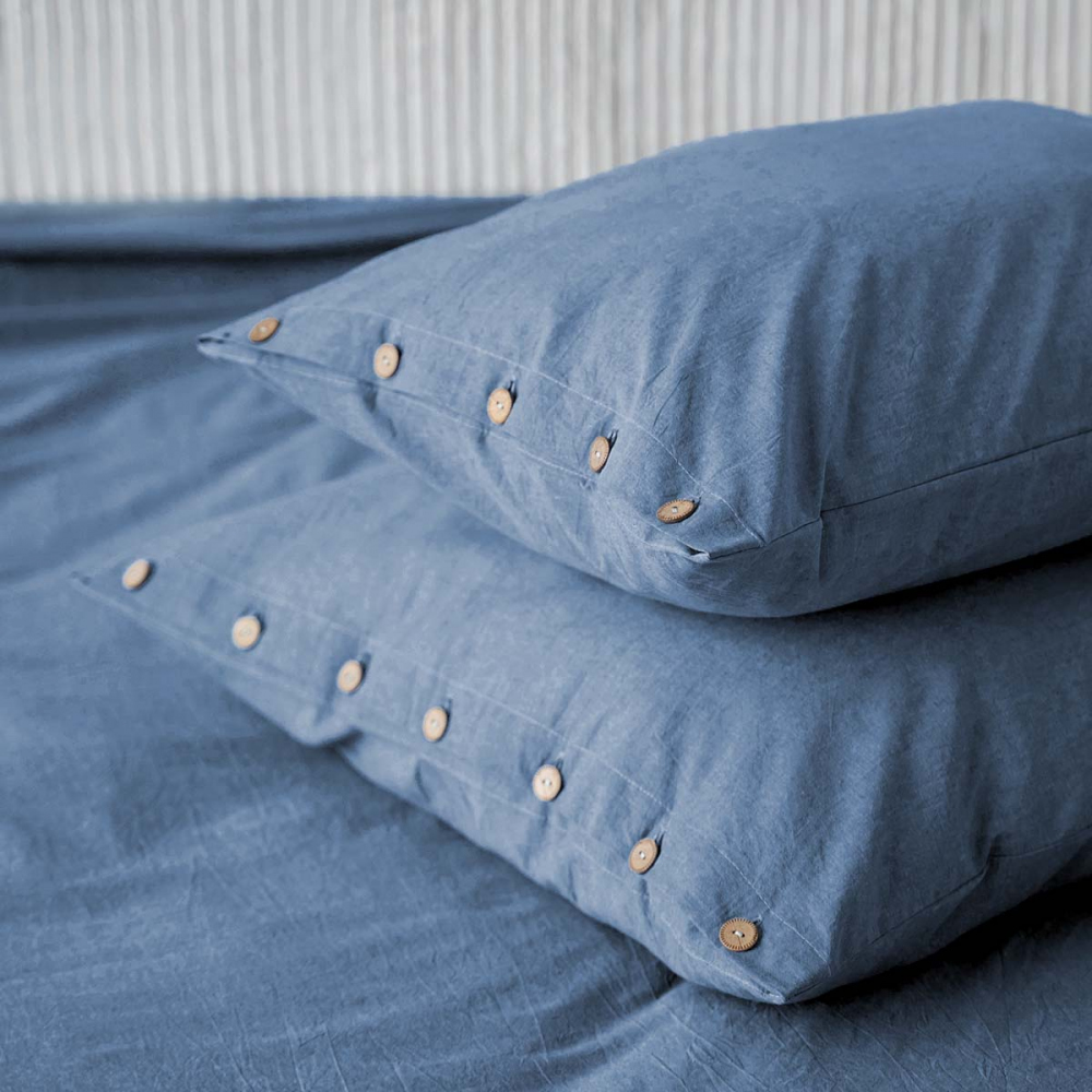 Комплект наволочек из натуральной однотонной ткани. В комплект входят 2 наволочки на пуговицах. Материал ткани - вареный хлопок, состав - 100% хлопок, плотность ткани - 120 г/м2.
