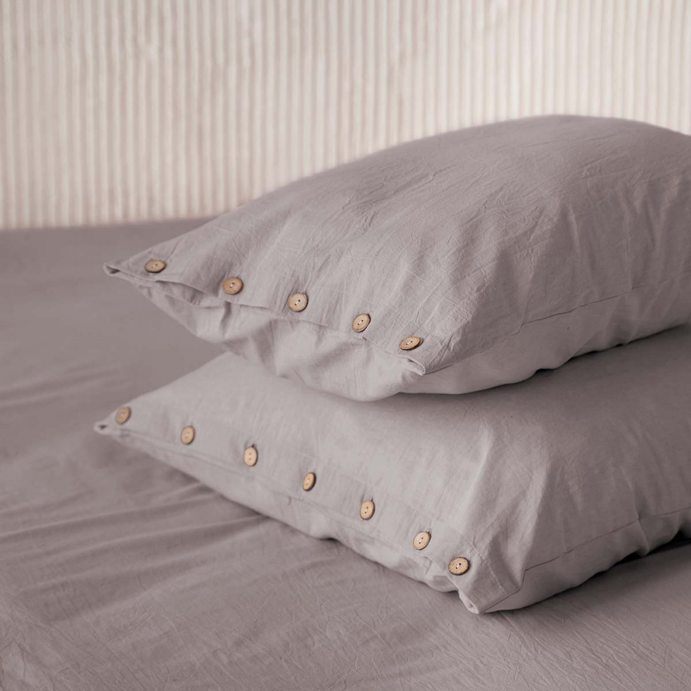 Комплект наволочек из натуральной однотонной ткани. В комплект входят 2 наволочки на пуговицах. Материал ткани - вареный хлопок, состав - 100% хлопок, плотность ткани - 120 г/м2.