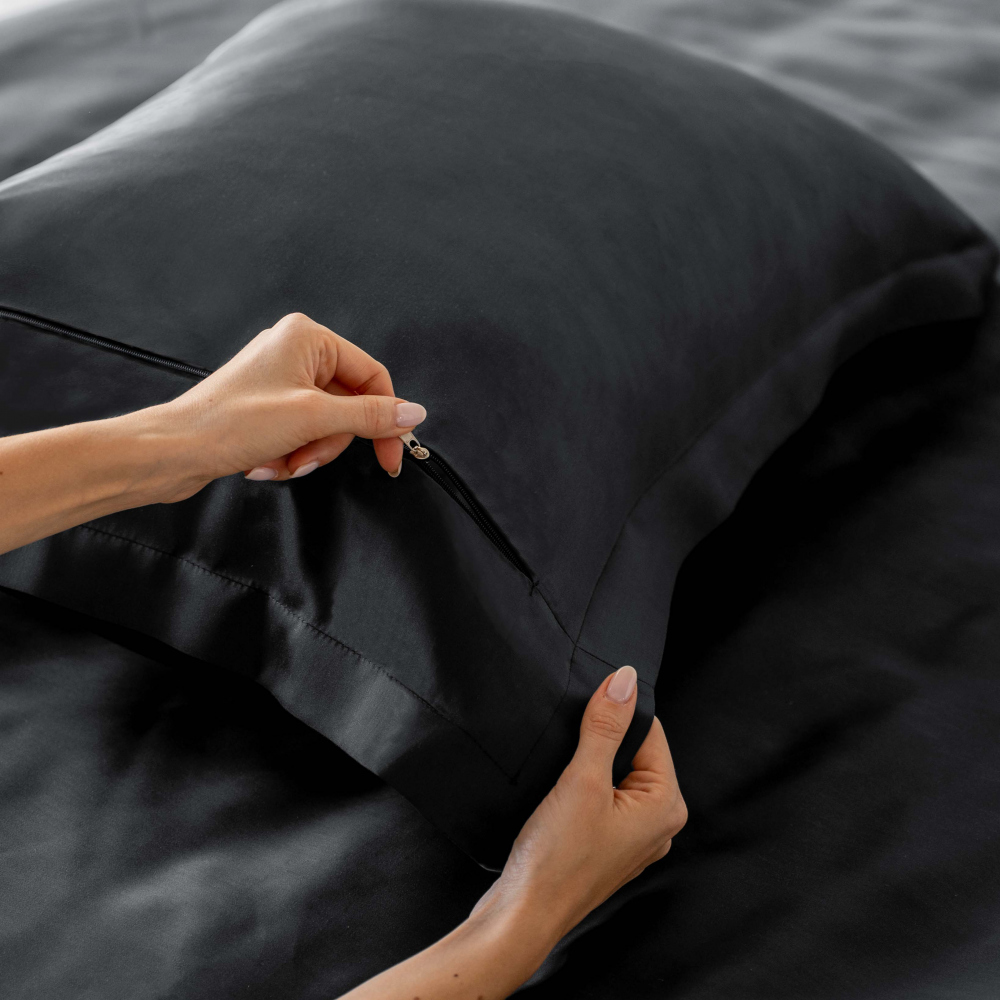 Комплект наволочек из натуральной однотонной ткани. В комплект входят 2 наволочки на молнии с бортом. Материал ткани - тенсел, состав - 60% тенсель / 40% хлопок, плотность ткани - 125 г/м2.