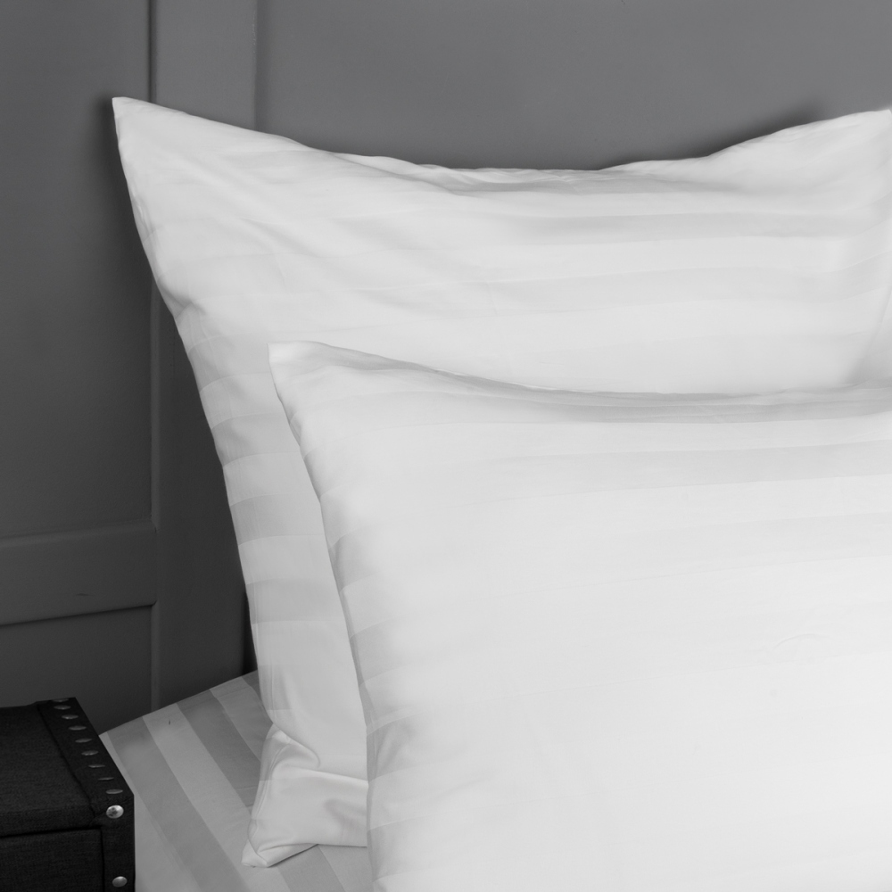 Комплект наволочек из выбеленного, мерсеризованного страйп-сатина с клапаном-заходом (25 см). Антипилинговая jet-обработка. Состав - 100% хлопок. Плотность ткани - 135 г/м2. Конструкция ткани: 40sХ40s/140х105. Страна производства ткани - Китай.