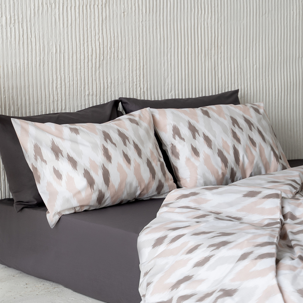 Комплект наволочек из натуральной ткани с графичным принтом. В комплект входят 2 наволочки с клапаном. Материал ткани - ранфорс, состав - 100% хлопок, плотность ткани - 115 г/м2.
