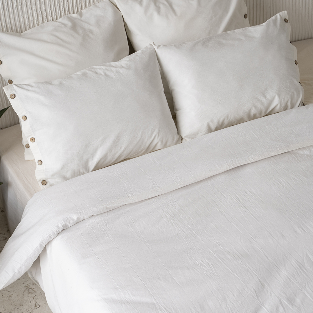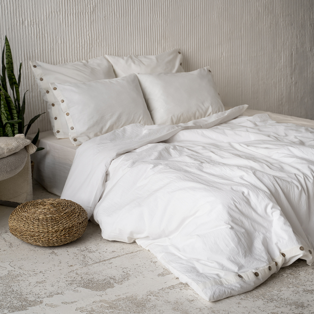 Копплект постельного белья из натуральной однотонной ткани. В комплект входят наволочки и пододеяльник на пуговицах. Комплектность зависит от размера изделия. Материал ткани - вареный хлопок, состав - 100% хлопок, плотность ткани - 120 г/м2.