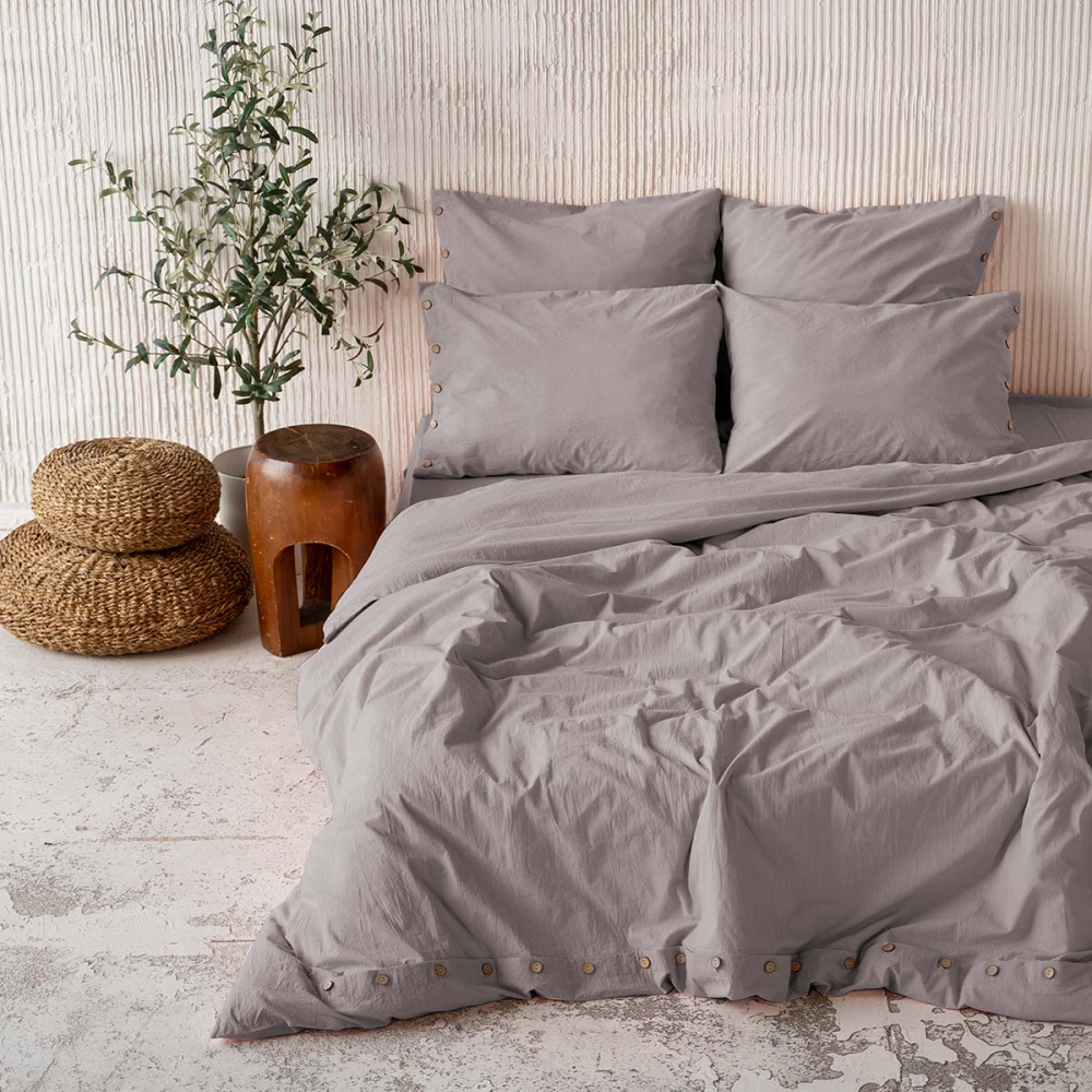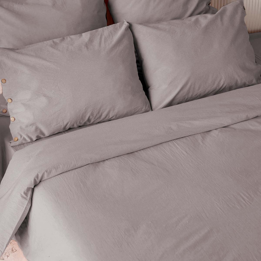 Копплект постельного белья из натуральной однотонной ткани. В комплект входят наволочки и пододеяльник на пуговицах. Комплектность зависит от размера изделия. Материал ткани - вареный хлопок, состав - 100% хлопок, плотность ткани - 120 г/м2.