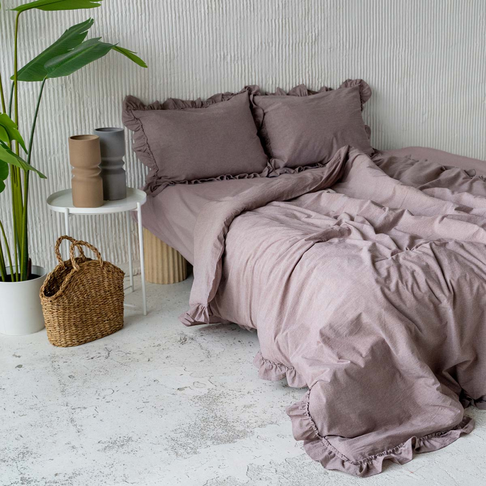 Комплект постельного белья с рюшами из натуральной однотонной ткани. Материал ткани - вареный хлопок, состав - 100% хлопок, плотность ткани - 120 г/м2.
