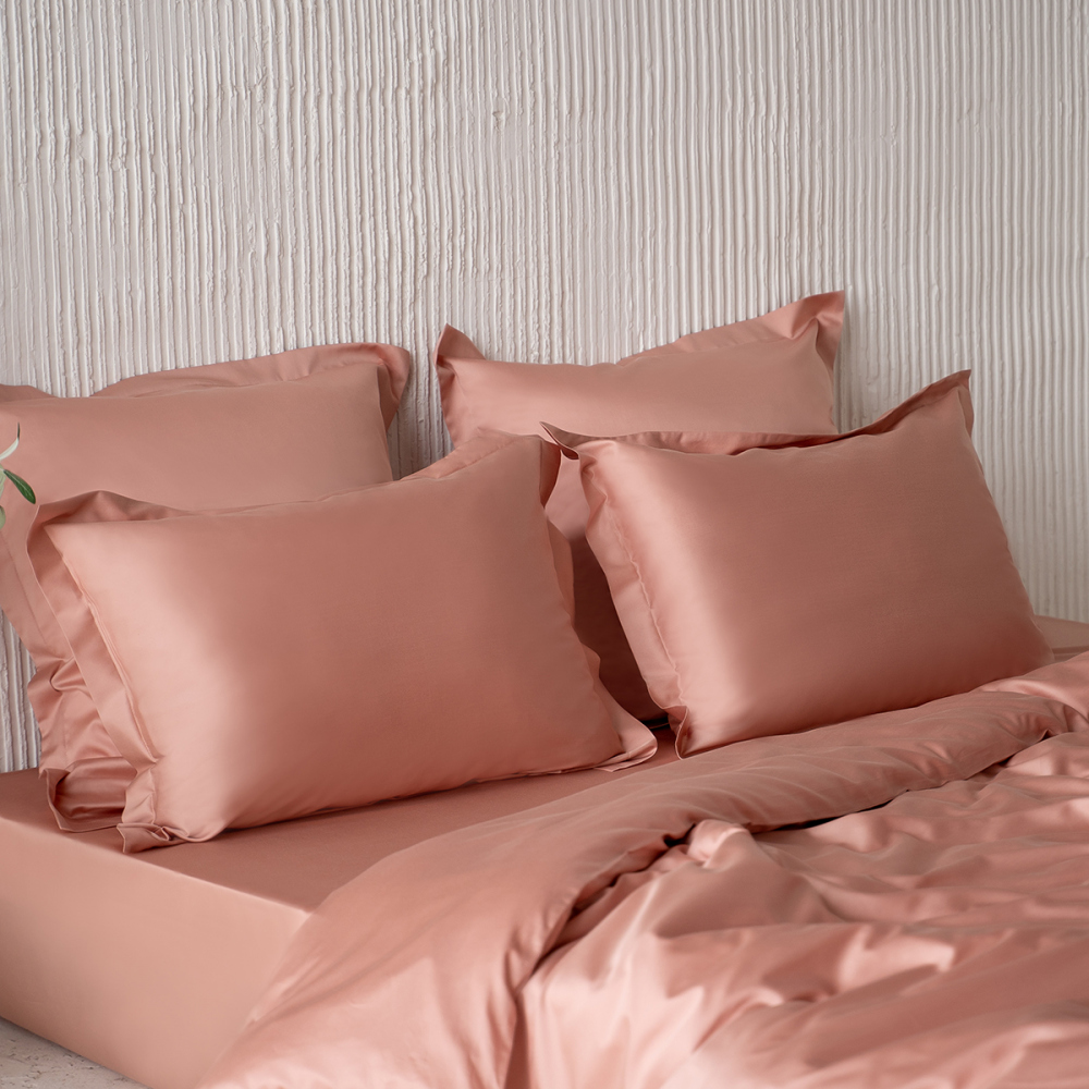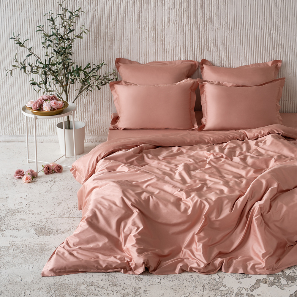 Комплект постельного белья из натуральной однотонной ткани. В комплект входят 2 наволочки с бортом на молнии, пододеяльник с бортом на молнии, простыня. Материал-тенсел, состав - 60%тенсель / 40%хлопок. Плотность ткани - 125 г/м2.