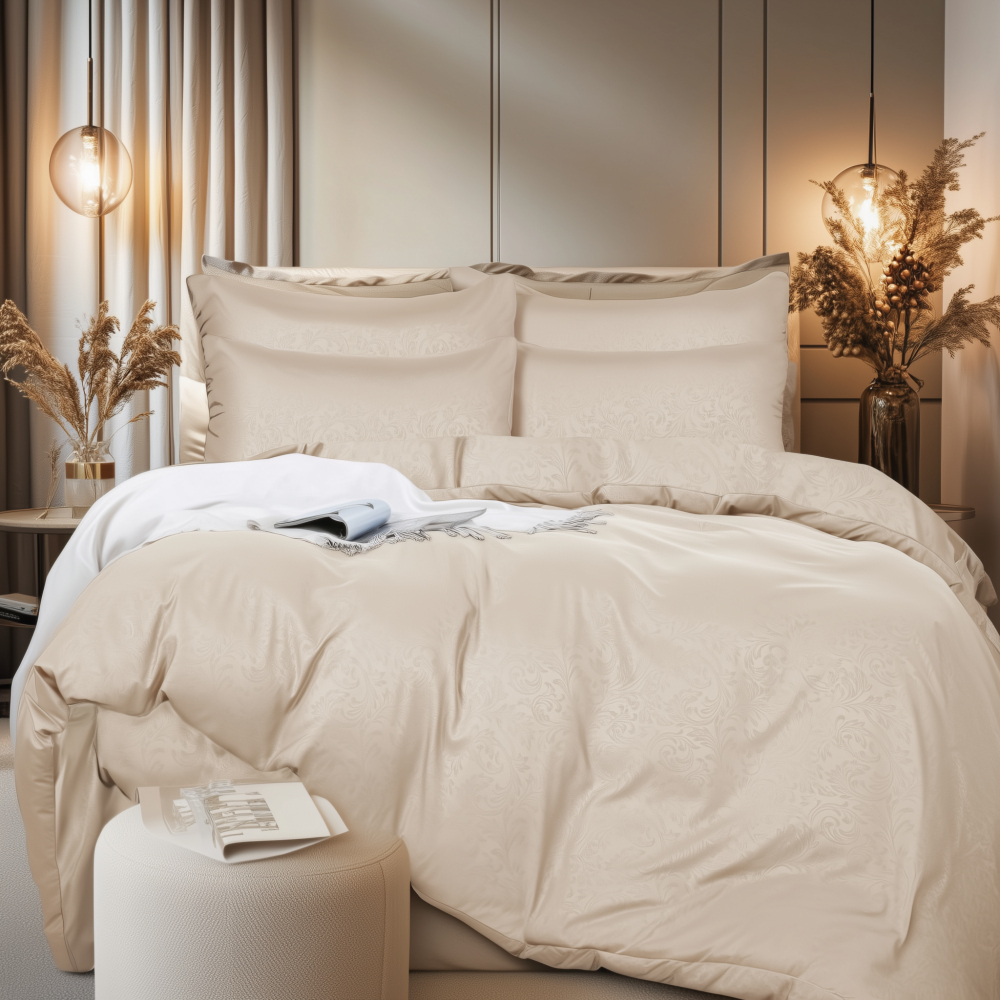 Комплект однотонного постельного белья. В комплект входят 2 наволочки и 1 пододеяльник. Материал ткани - полисатин, состав - 100% полиэстер, плотность ткани - 85 г/м2.