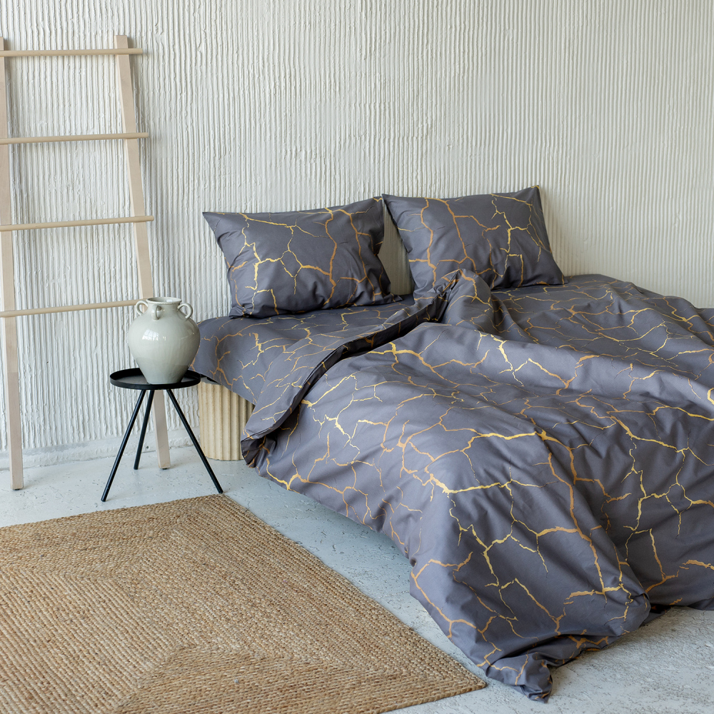 Комплект постельного белья кракле. В комплект входят 2 наволочки, 1 простыня и 1 пододеяльник на молнии. Материал ткани - перкаль, состав - 100% хлопок, плотность ткани - 115 г/м2.