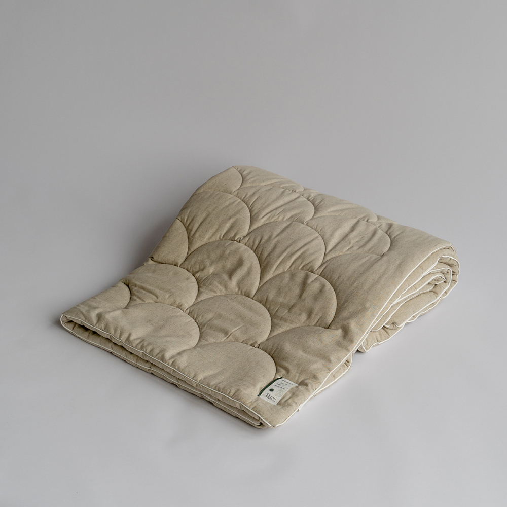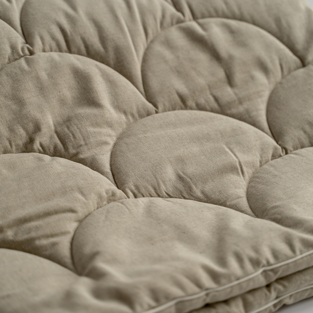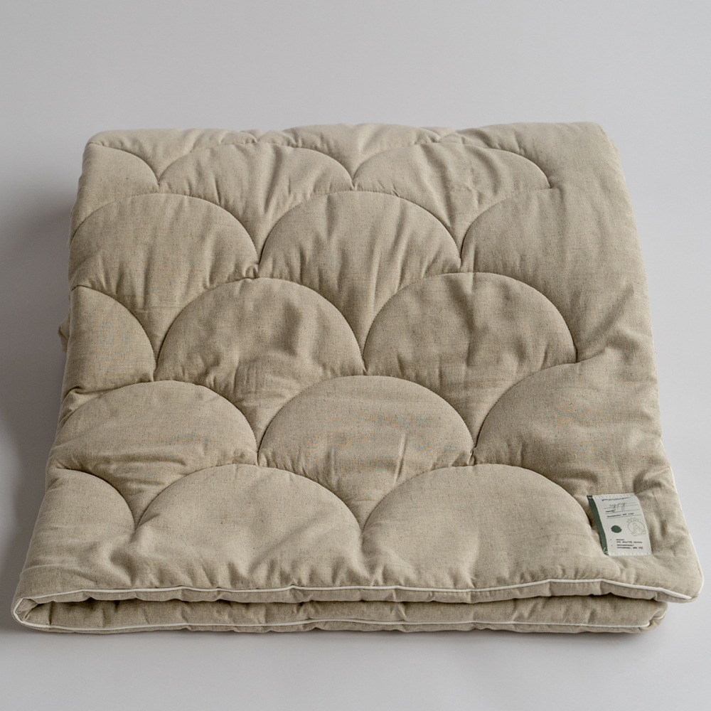 Стеганое одеяло. Материал ткани - лён 140гр/м2, 100% хлопок. Наполнитель - льняной пласт 300 гр/м2, 50% Котонизированный лён/50% Полиэфирное волокно