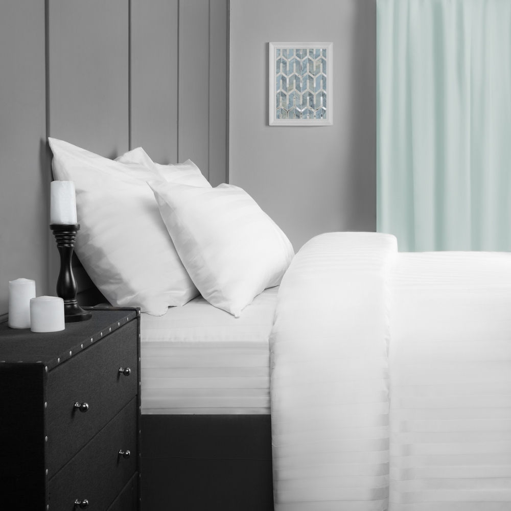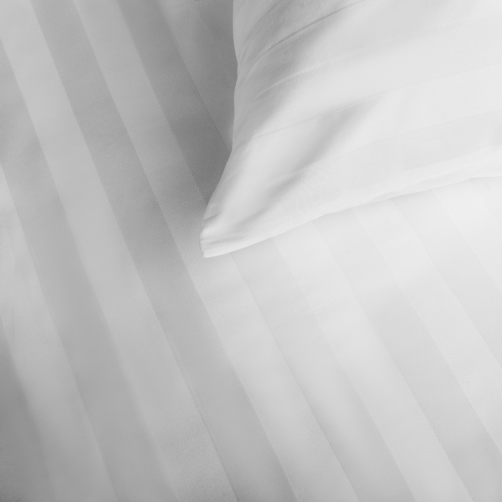 Пододеяльник с щелью из выбеленного, мерсеризованного страйп-сатина. Антипилинговая jet-обработка. Состав - 100% хлопок. Плотность ткани - 135 г/м2. Конструкция ткани: 40sХ40s/140х105. Страна производства ткани - Китай.