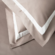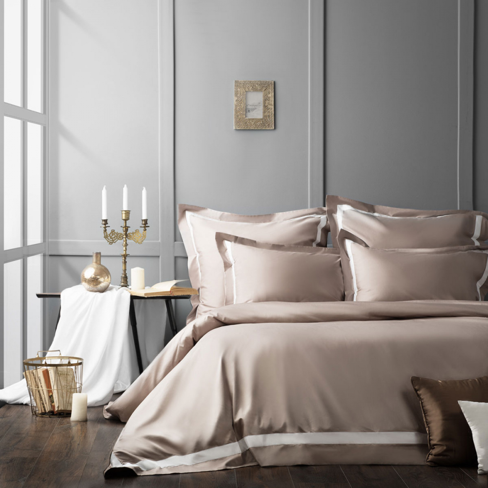 Комплект постельного белья из премиального сатина высокой плотности с отделкой контрастными планками. В комплект входят 2 наволочки, пододеяльник и простынь. Состав - 100% Хлопок.