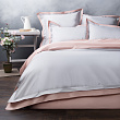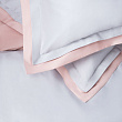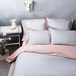 Комплект постельного белья из сатина с отделкой контрастными планками. В комплект входят 2 наволочки, пододеяльник и простынь. Состав - 100% Хлопок.